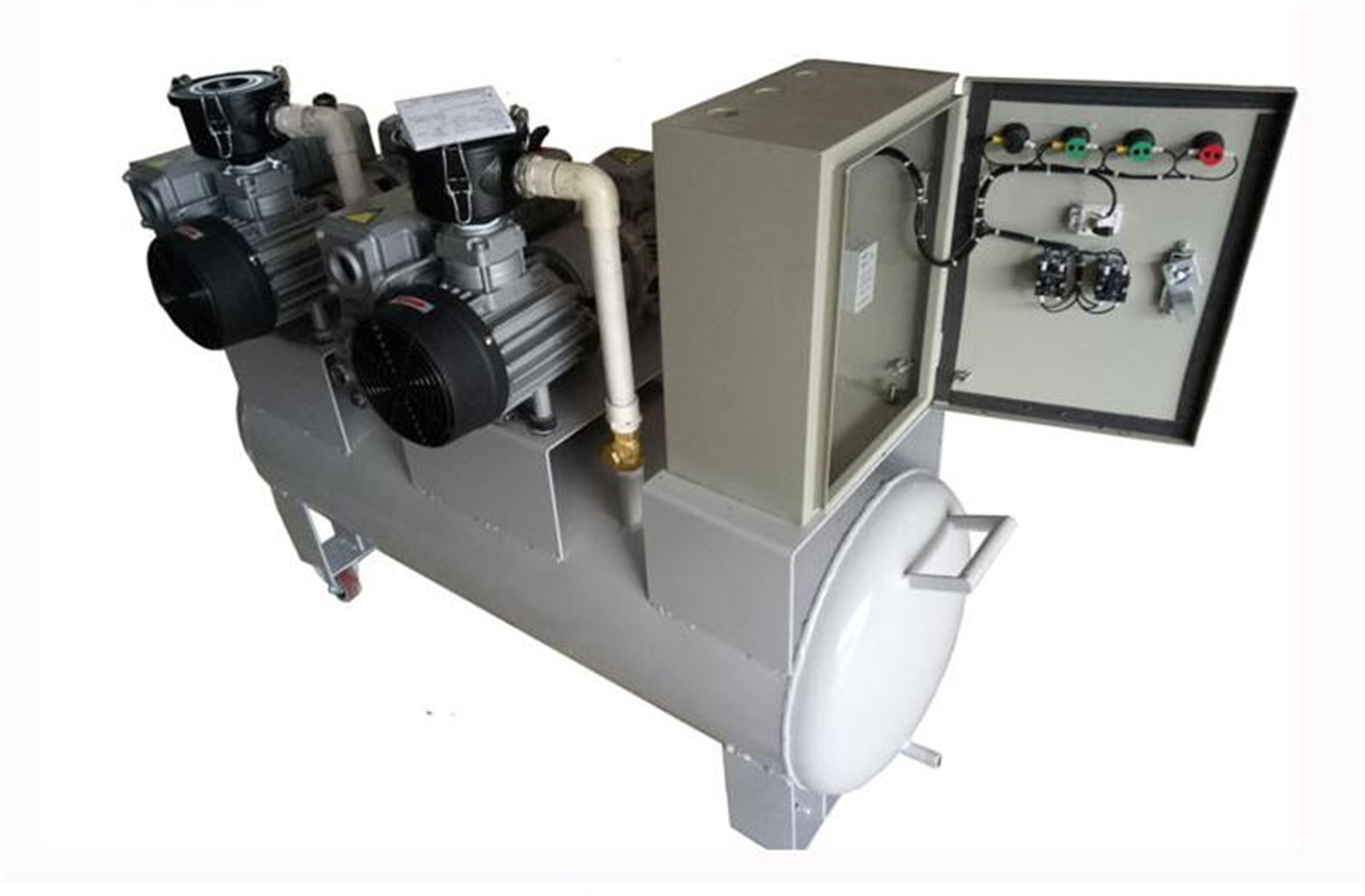 移動式真空負壓站一般包含真空緩沖罐、真空泵、控制制箱、冷卻卻器、真空附件、真空度報警系統;該系列負壓站包含兩種類型,即開放式真空負壓站和封閉式真空負壓站,客戶使用環境良好,操作簡單,成本要求嚴格,則可做開放式真空負壓站;客戶使用環境惡劣,有大量粉塵,可凝性氣體,腐蝕性氣體等環境,則做成封閉式。